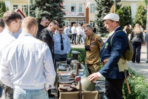 Затем участники мероприятия смогли попробовать настоящую солдатскую кашу, приготовленную в полевой кухне военнослужащими воинской части, получили на память праздничные латунные жетоны, на которые нанесены фамилии участников мероприятия, познакомились с ретроавтомобилем марки ГАЗ-21 «Волга», осмотрели тематическую выставку детских рисунков, авторами которых стали воспитанники ведомственного детского сада ОАО «РЖД». Объединённый архив Службы управления делами МЖД представил интересные исторические документы 40-х гг. ХХ века. Среди них личное дело первого начальника Брянского отделения Московской железной дороги Виктора Ефимовича Бирюкова. О своей работе гостям праздника рассказали члены поискового отряда «Доброволец», который возглавляет инженер административно-хозяйственного центра Брянского региона МЖД Сергей Новиков.