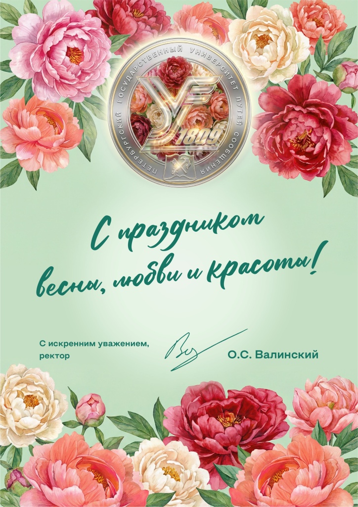Поздравление ректора Петербургского государственного университета путей сообщения Императора Александра I с Международным женским днём 8 Марта!